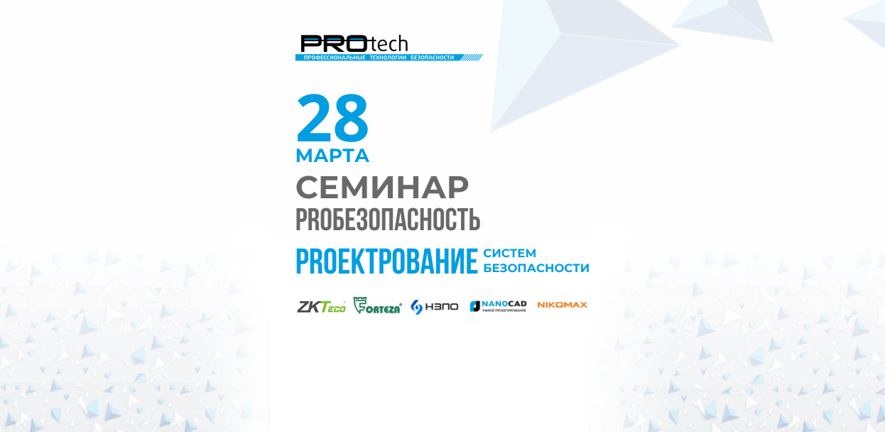 Компания «Протэк» приглашает проектировщиков, инженеров и специалистов в сфере безопасности на специализированный семинар, посвященный актуальным вопросам проектирования систем безопасности: охранных систем, видеонаблюдения, систем контроля доступа, проектирование СКС и пожаротушения.